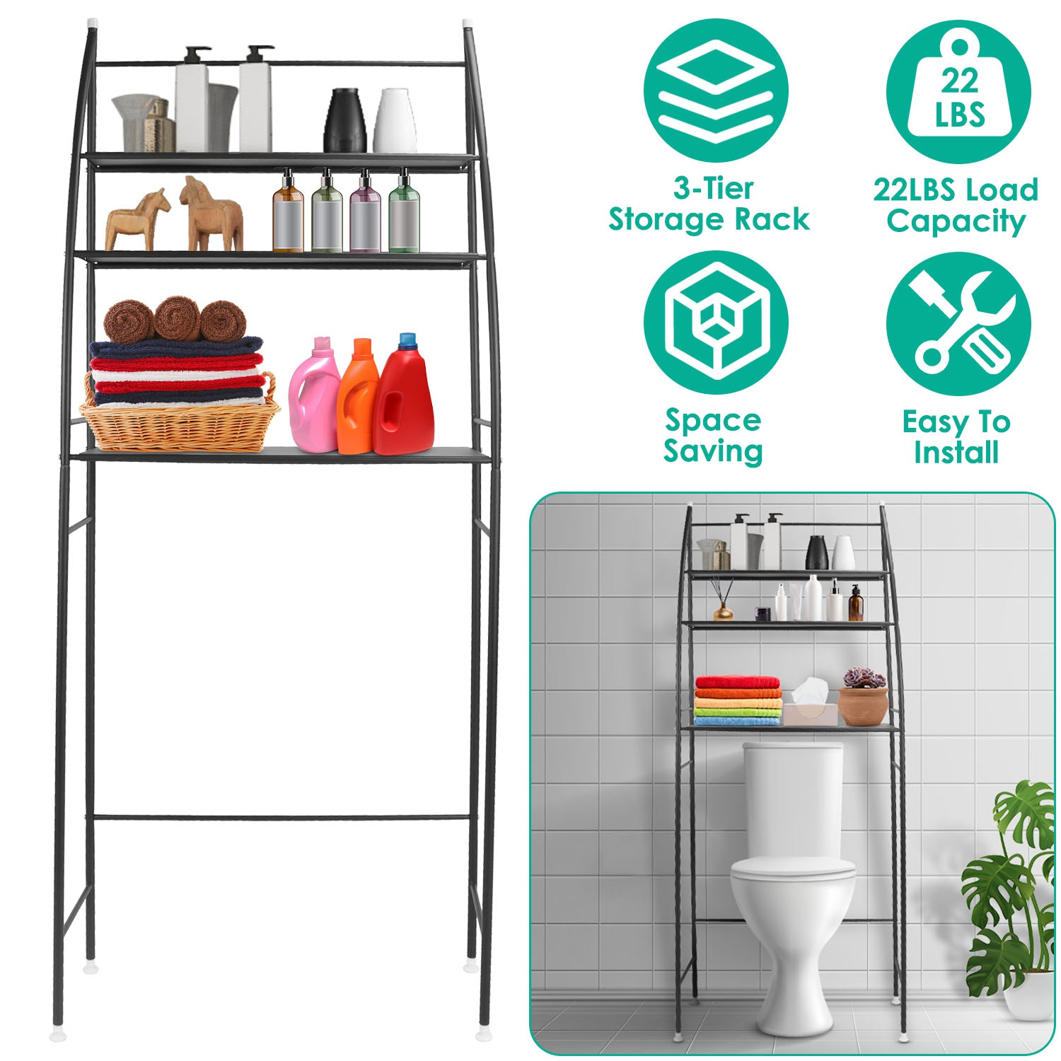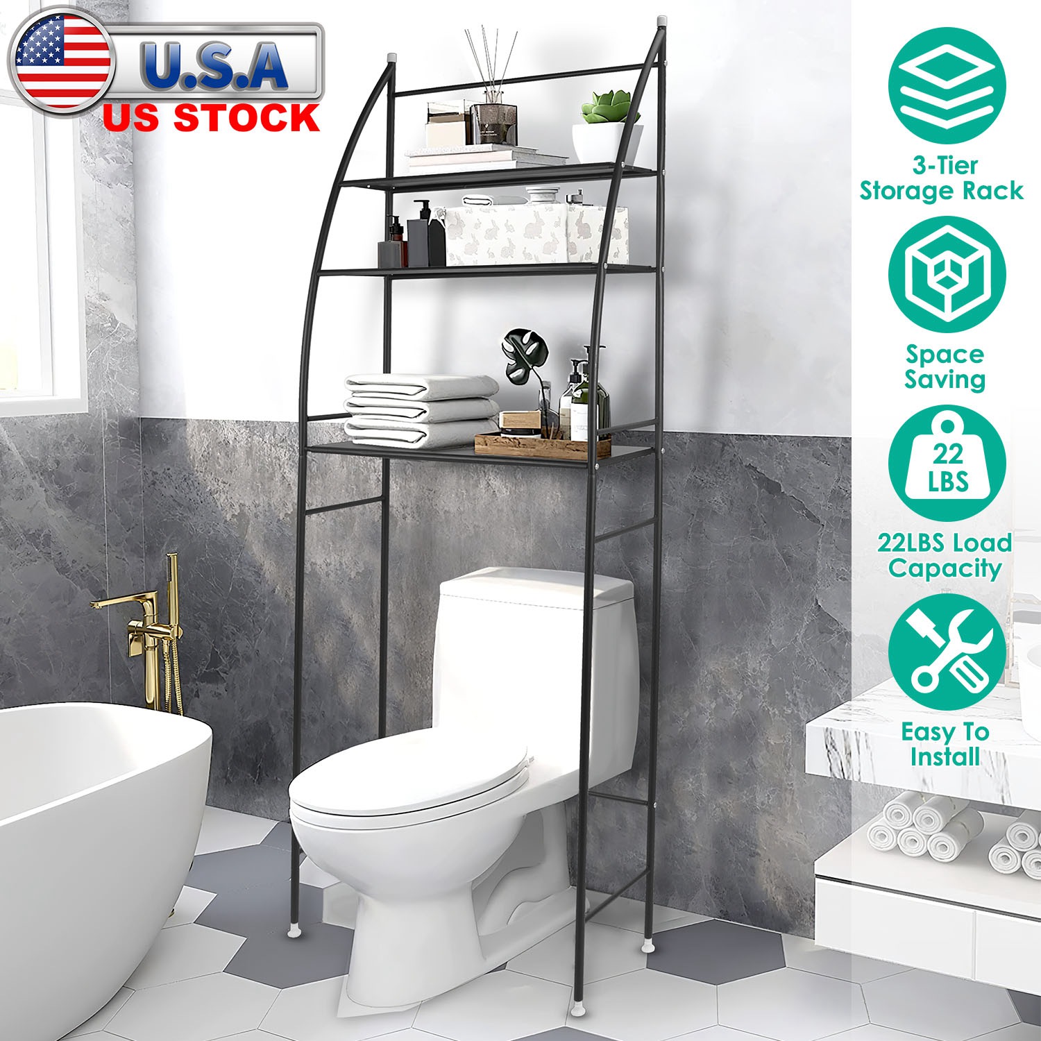 Are you annoyed by the narrow storage space in bathroom? Our 3-tier over toilet rack is an easy and affordable choice to provide you additional bathroom storage without occupying much available space. The bottom layer is 36in height from ground, and 24.21in width, definitely suitable for most sizes toilet. Not only can be used to place towels, Roll paper, magazines, candles and other bathroom items, but also can store plants, clothes, bags, snacks in patios, laundry room, living room, etc..