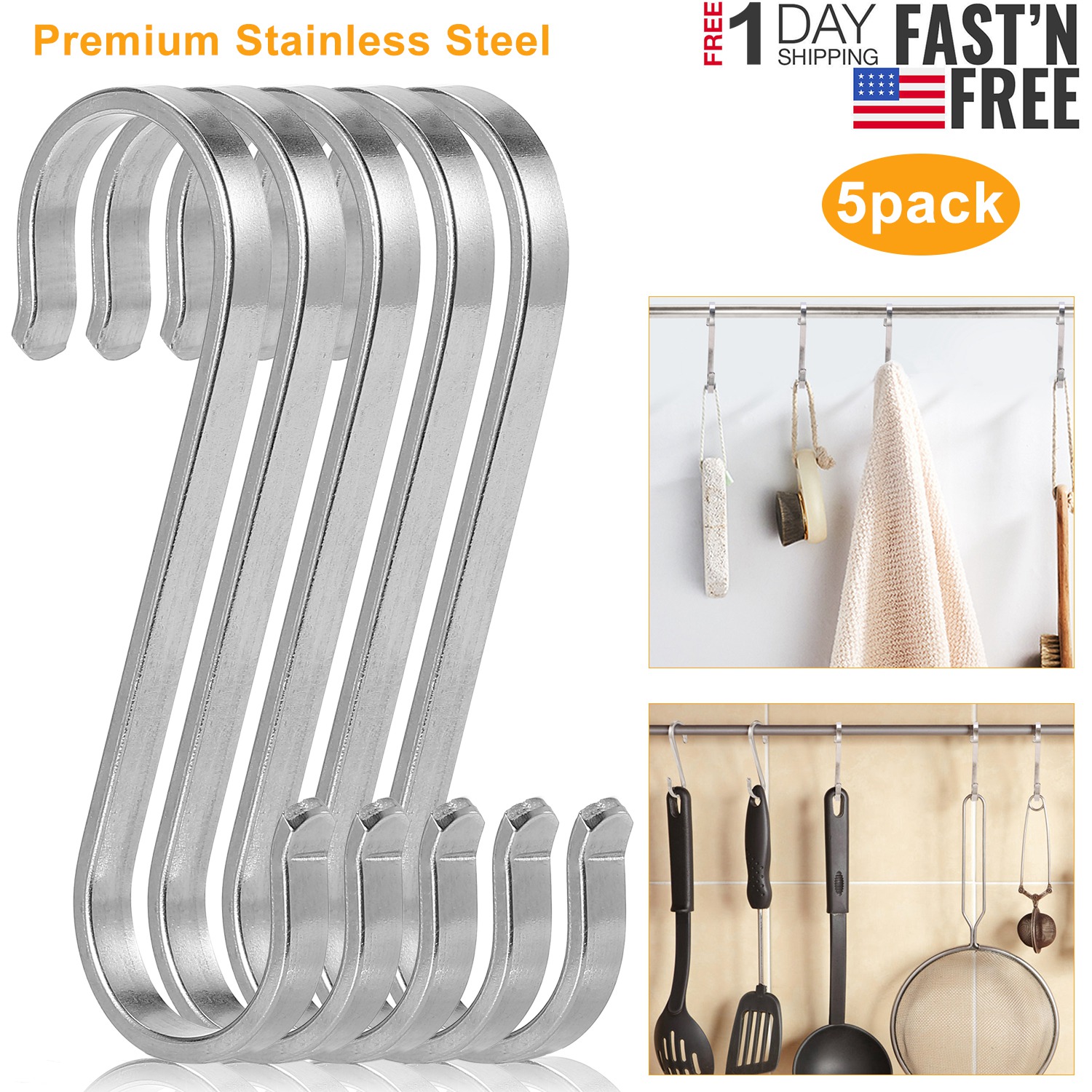 Home > 5 Pcs Flat S Stainless Steel Hooks Heavy Duty Hook Hangers for Kitchen Bathroom Closet Store