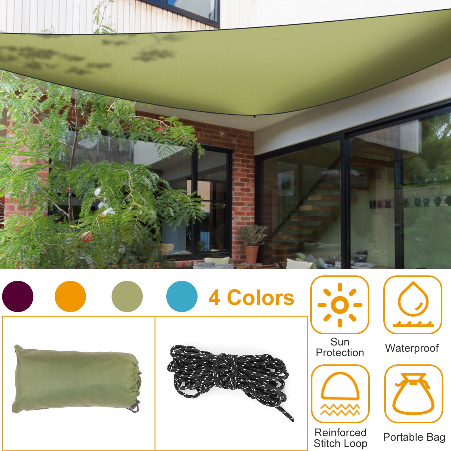 Our Shade Sail Top Canopy, made of polyester taffeta material, is waterproof and can block the sun for you, which is durable enough to last a long time. All durable edges, which are reinforced, can properly tension. Pull the rope tighter, keep knots stay tight without any slipping. You can use it in the patio, lawn, garden and so on in the sun or in light rain. But do not use it in heavy rain.