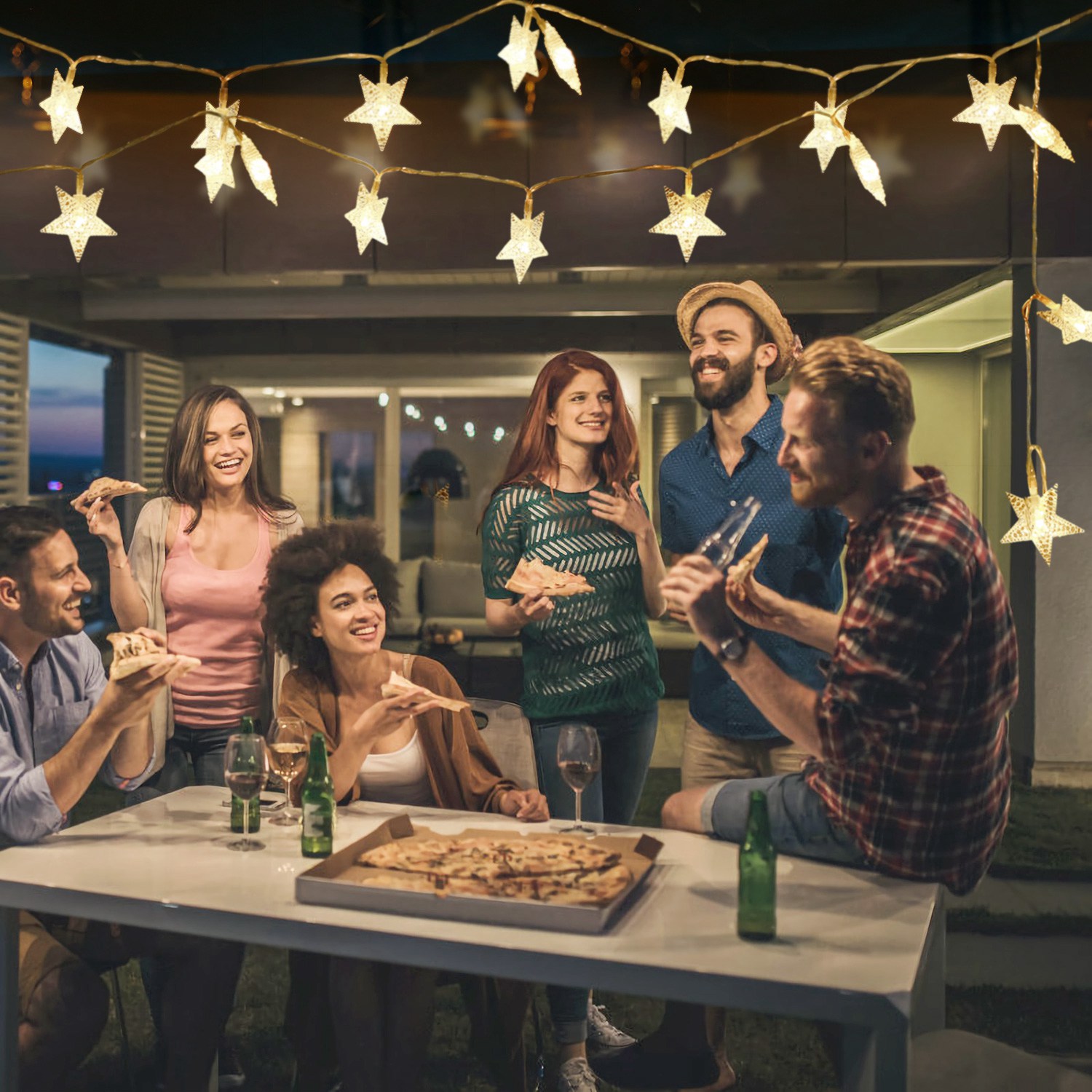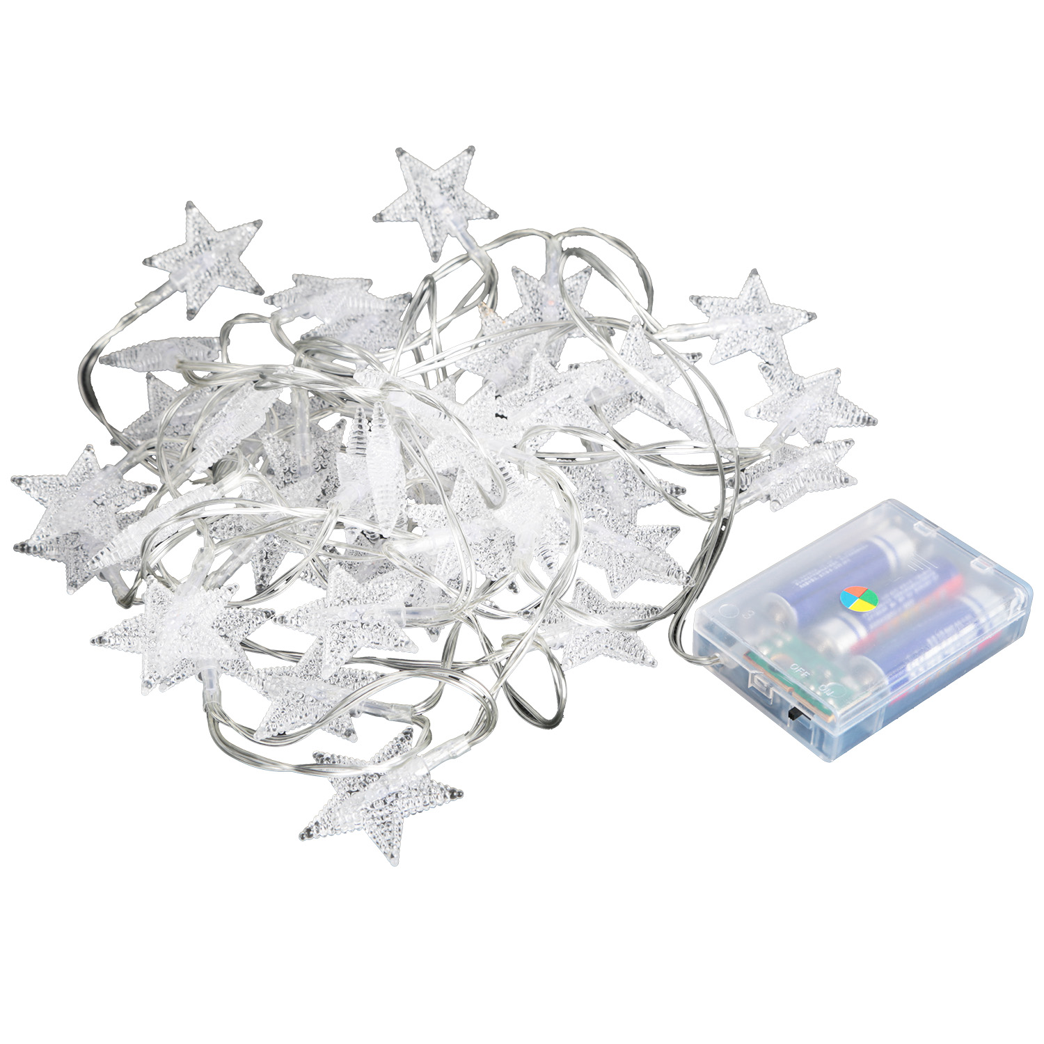 Our star string lights are designed with constant mode and flash mode, 40Pcs LED star lights dotted in a 13.12ft wire display a romantic atmosphere for your home. Powered by 3pcs AA batteries (not included). Only weighs 0.52lbs and can be used in anywhere (indoor and outdoor decoration).Build with PVC materials, well construction and durable, optimal for the decoration of kids’ room, Christmas, parties, Valentine's Day, wedding, home, garden, shop, etc.