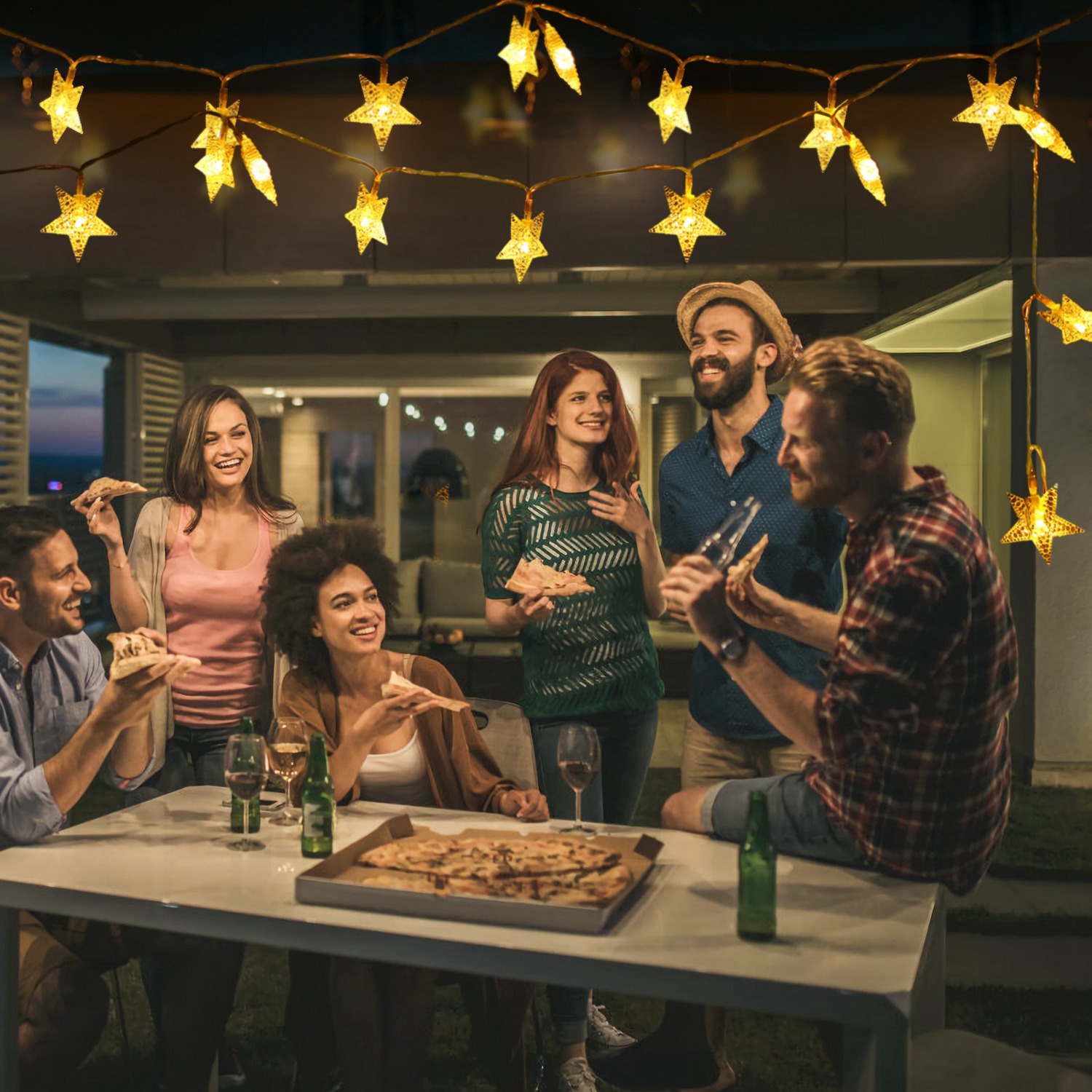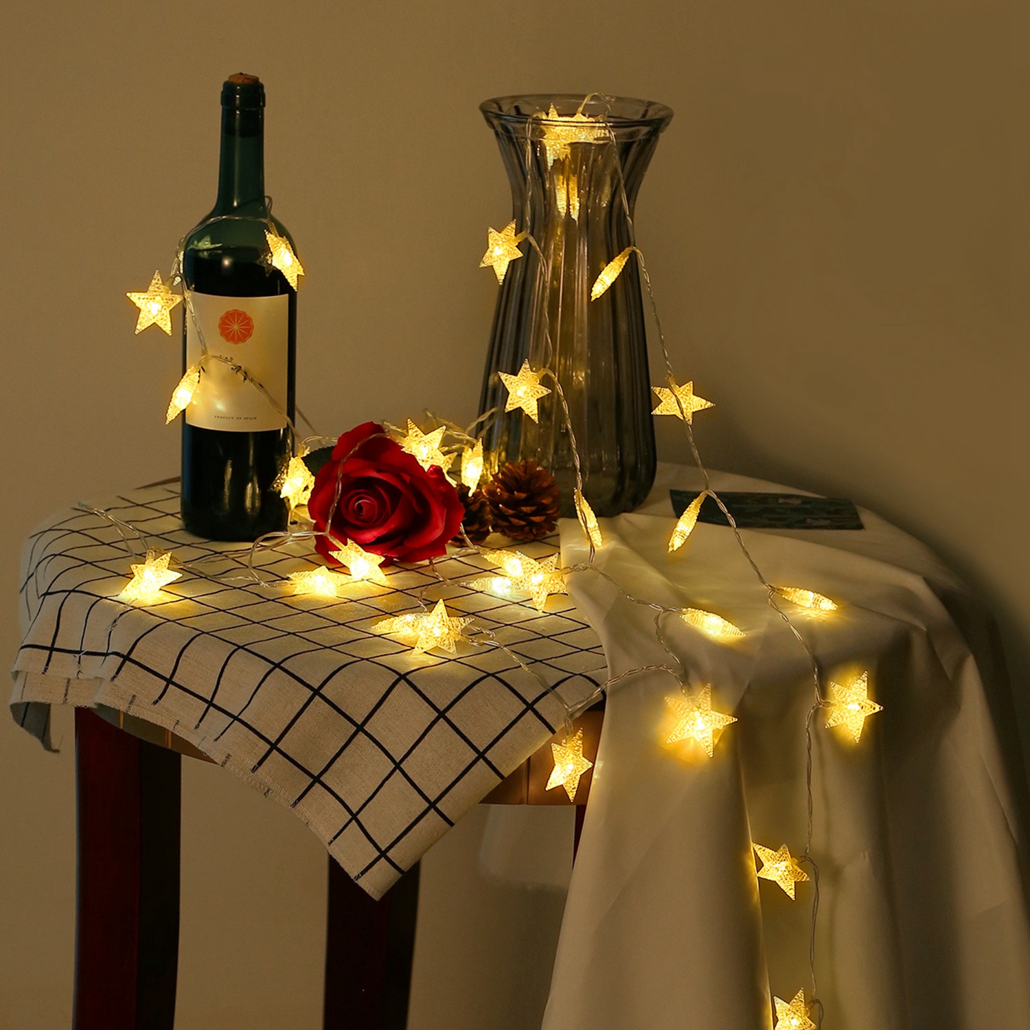 Our star string lights are designed with constant mode and flash mode, 40Pcs LED star lights dotted in a 13.12ft wire display a romantic atmosphere for your home. Powered by 3pcs AA batteries (not included). Only weighs 0.52lbs and can be used in anywhere (indoor and outdoor decoration).Build with PVC materials, well construction and durable, optimal for the decoration of kids’ room, Christmas, parties, Valentine's Day, wedding, home, garden, shop, etc.
