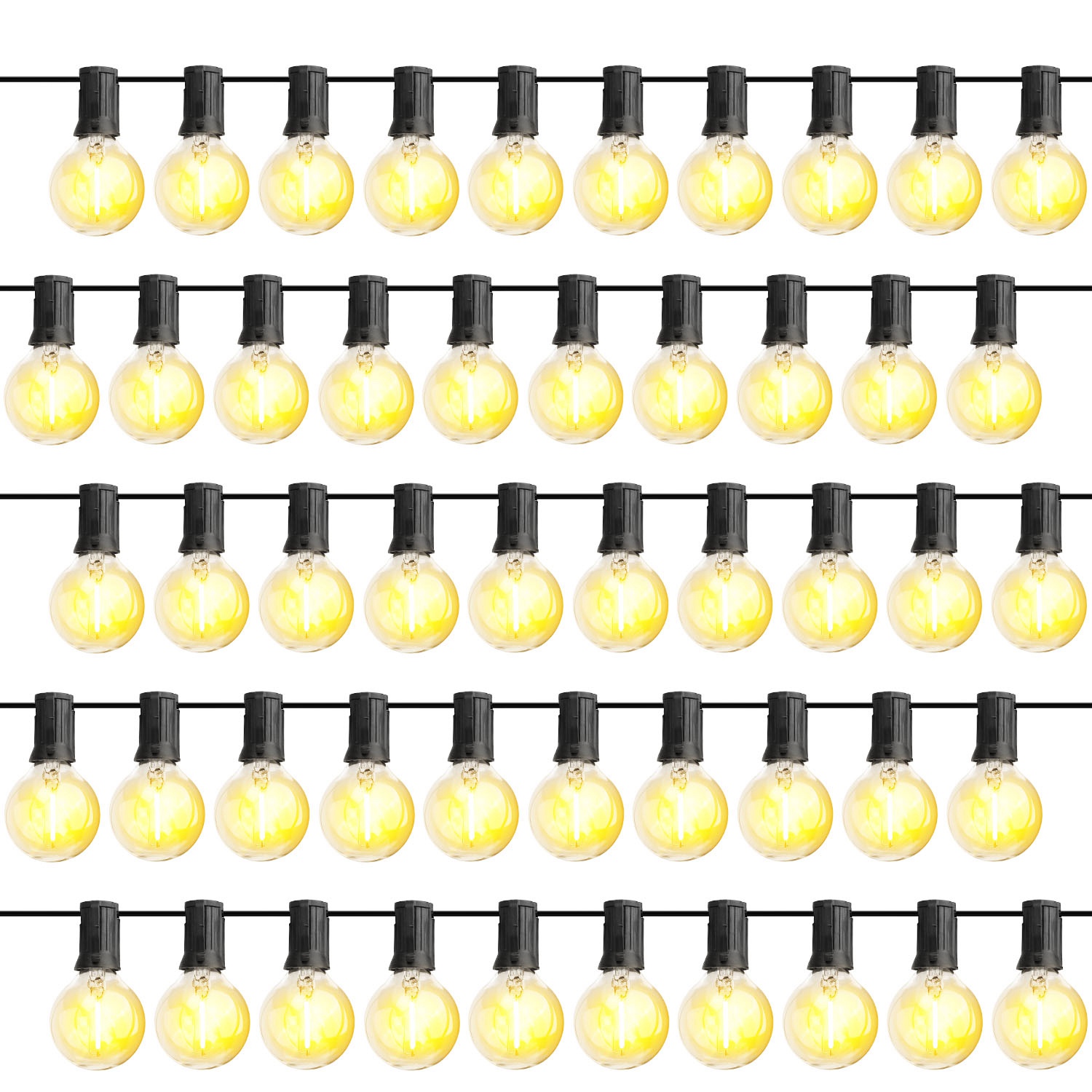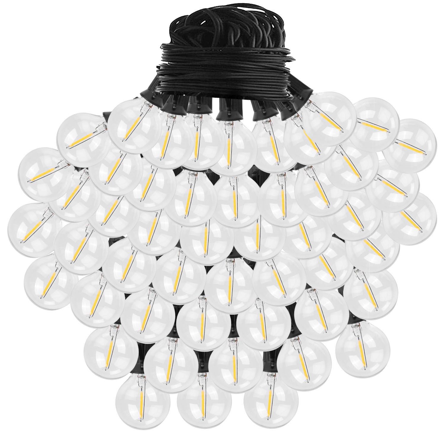 Adopting 50pcs 2700K warm glass bulbs strung through a 50ft long cord, it can create a warm, cozy and relaxing atmosphere for garden, backyard, patio and more. Designed with hooks on each light bulb, it is easy to hang it over the patio or on the wall with its long cord. Optimal for the decoration of Christmas, parties, wedding, festival, etc.!