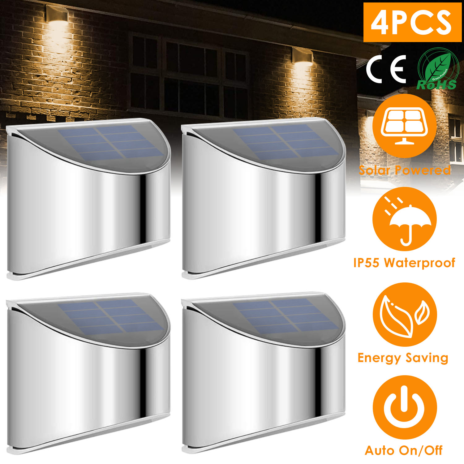 Home > 4Pcs Solar Powered Deck Lights Outdoor Decorative Step Fence Lamp Stainless Steel IP55 Waterproof Solar Light For Patio Garden Stair Fence Railing