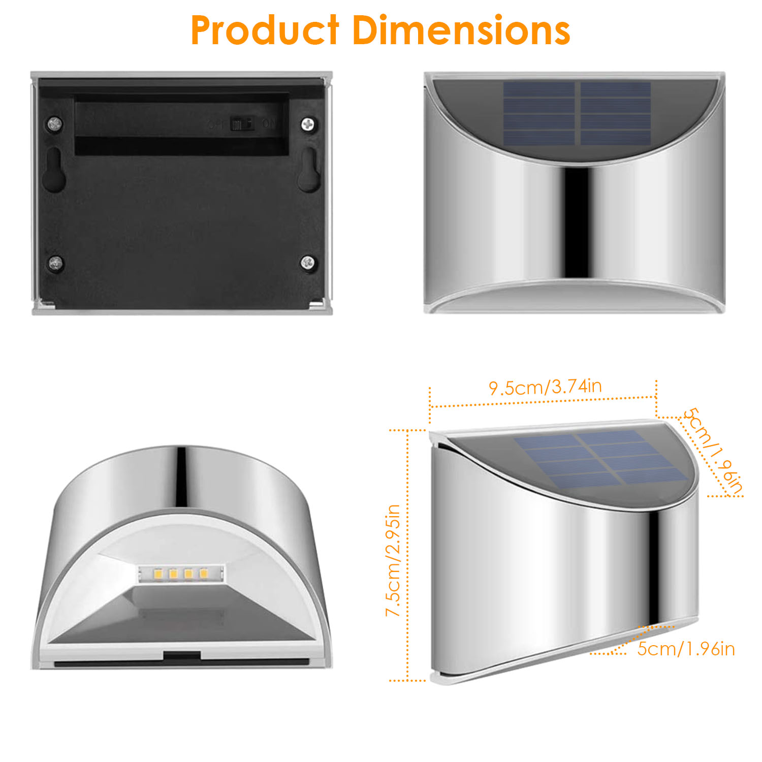 Home > 4Pcs Solar Powered Deck Lights Outdoor Decorative Step Fence Lamp Stainless Steel IP55 Waterproof Solar Light For Patio Garden Stair Fence Railing
