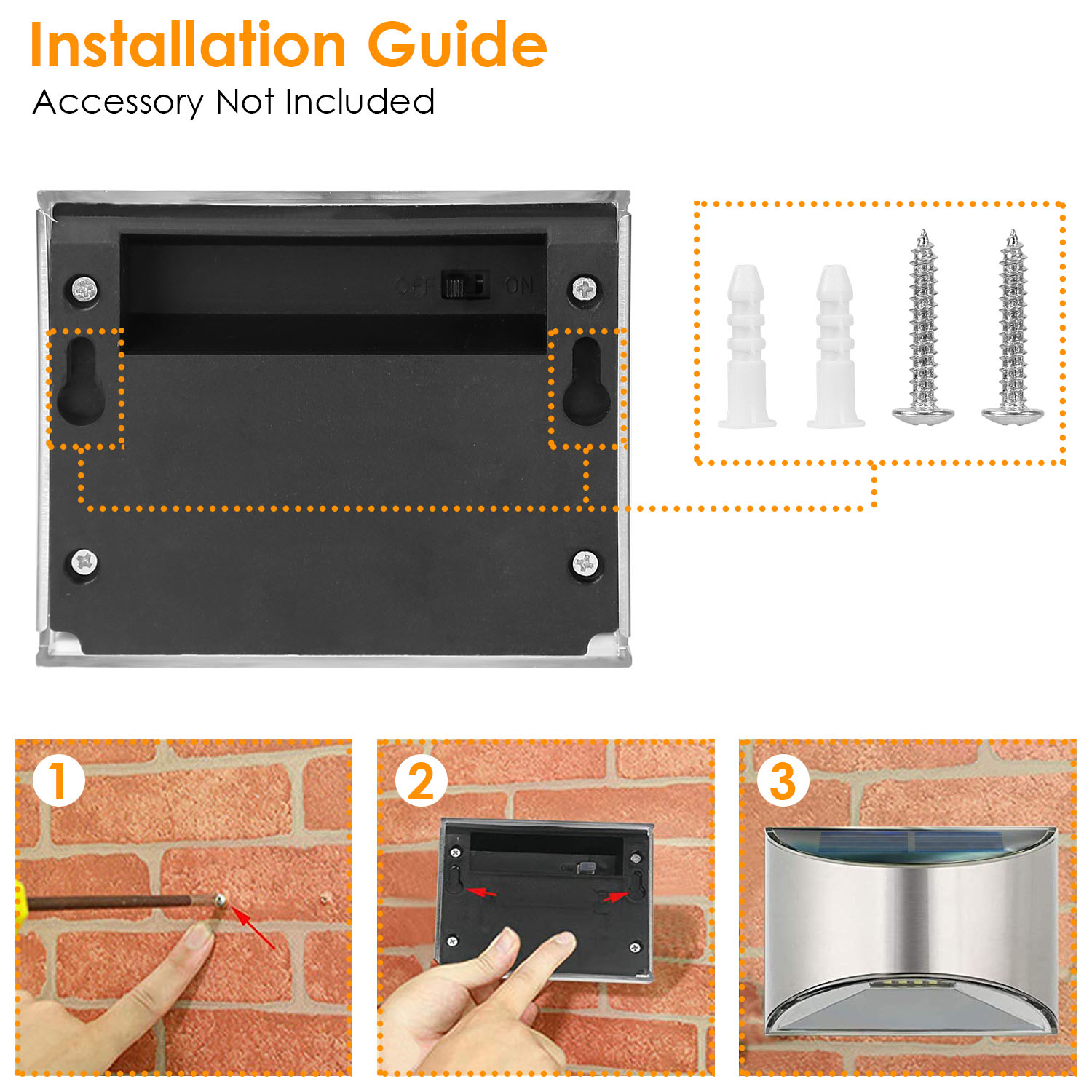 Our solar fence light can light your walking way. Inbuilt 600mAh battery and 4 solar powered LED beads per light, it can illuminate for 6-8Hrs once charged for about 8Hrs during daytime. Featured with IP55 waterproof performance, it can be installed on gutter, fence, wall, roof, patio, walkway, garden, front door and backyard etc.. This is not only securing your safety but also is a part of your house decoration.