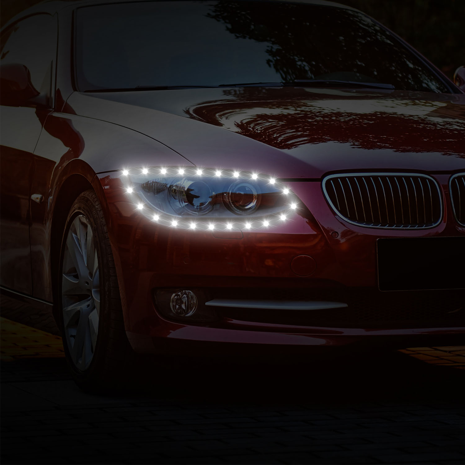 Our LED light strip adopts 15pcs 0.15lm 2835 SMD LEDs, brighter, lower power consumption, less thermal emission, and faster heat dissipation than traditional LED light strip to prolong its lifespan (up to 50,000 Hours). Combining completely-sealing epoxy with special-made circuit board and owning a tough self-adhesive tape on its back, it is IP68 waterproof to still work well even in heavy rainy night and flexible to be installed on the exterior and interior of most vehicles (pickup trucks, trailers, cars, SUV, motorcycle, etc.) with DC 12V power source.