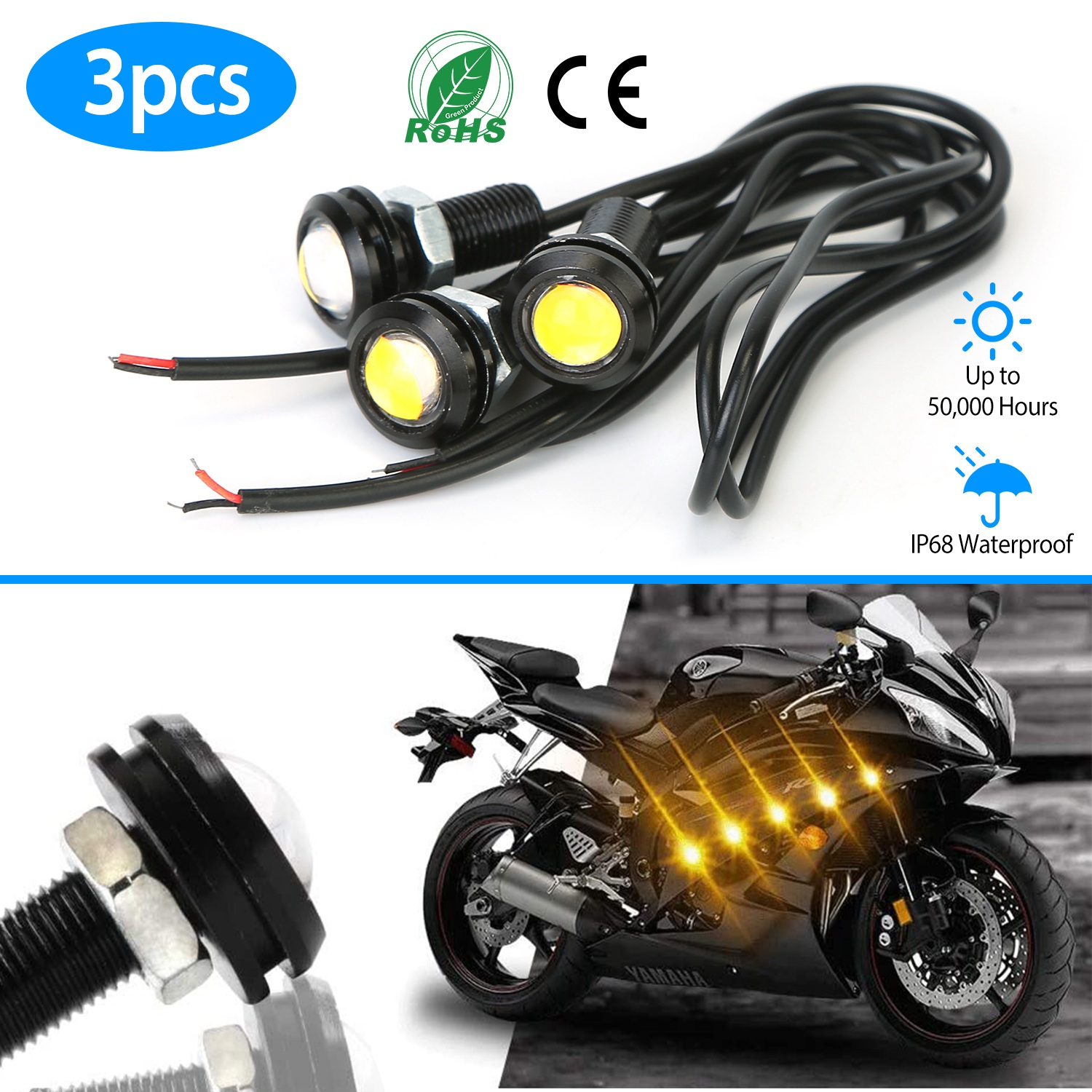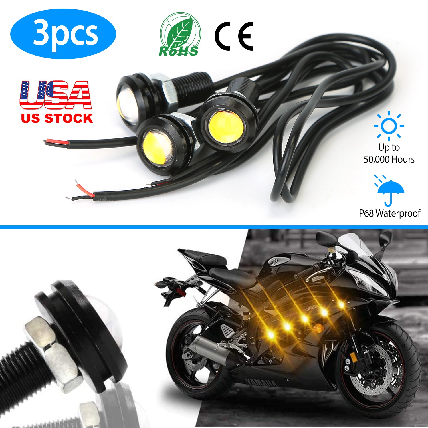 3Pcs Amber Eagle Eye LED Light Bulbs 12V 18MM Waterproof DRL Lights Fog Tail Front Grill Bumper Backup Clearance Marker Light