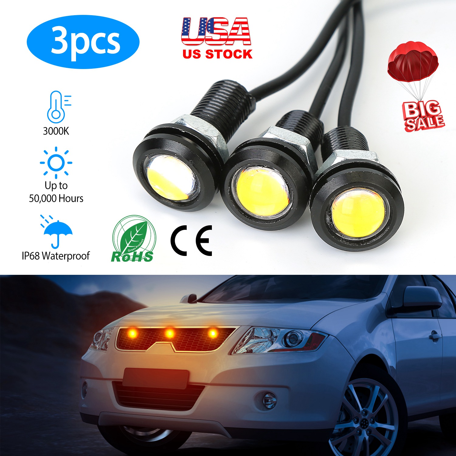 Home > 3Pcs Amber Eagle Eye LED Light Bulbs 12V 18MM Waterproof DRL Lights Fog Tail Front Grill Bumper Backup Clearance Marker Light
