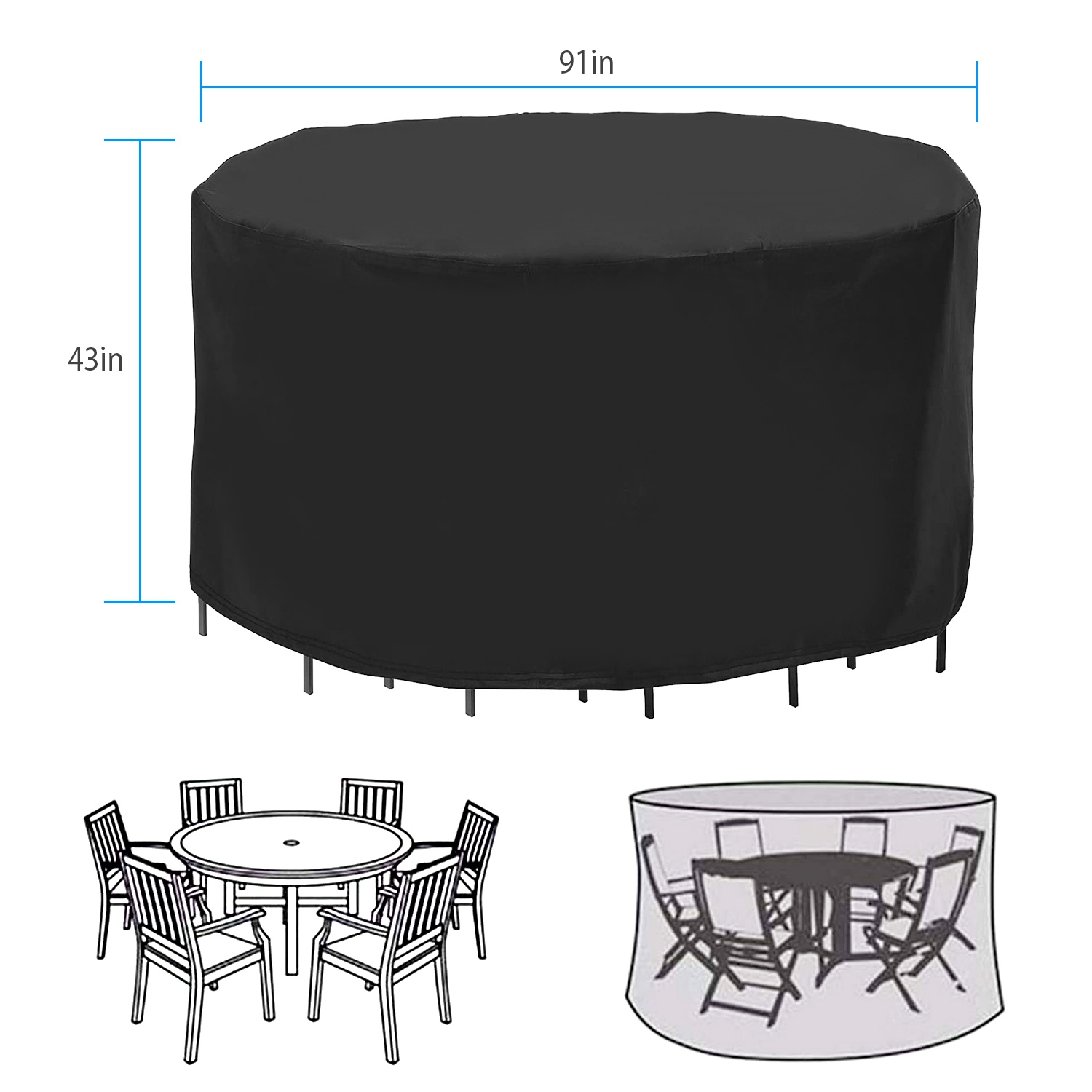 Home > 91x43in Circular Table Cover 6-Seat UV Water Resistant Outdoor Furniture Protector For Small Round Table Chairs Set