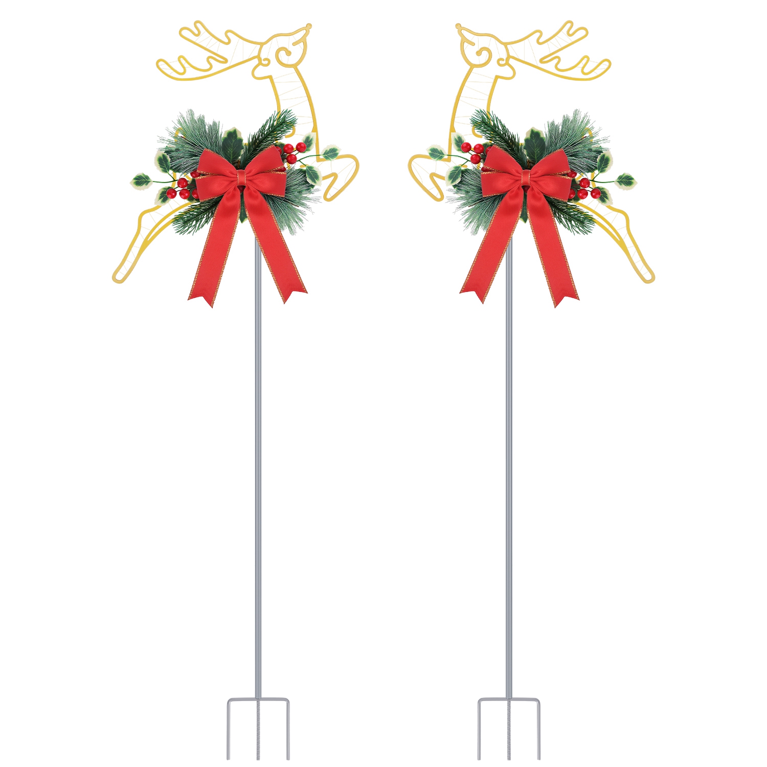 2Pcs Christmas Lighted Reindeer Decoration LED Pathway Stake Lights Battery Powered for Outdoor Garden Lawn Porch Front Door Patio Holiday Decor