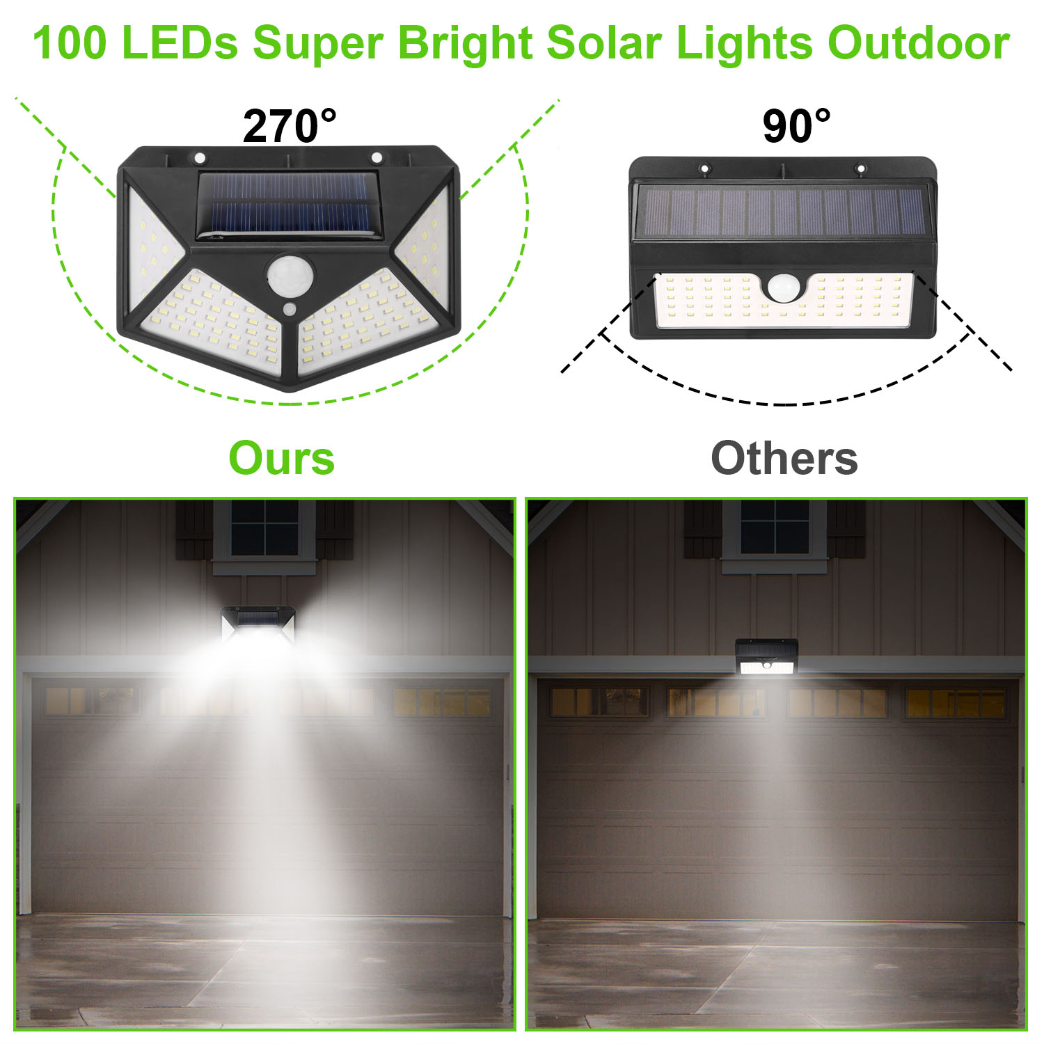 Home > Solar Wall Light Outdoor 100LEDs PIR Motion Sensor Lamps IP65 Waterproof Night Lights For Garage Front Door Garden Pathway