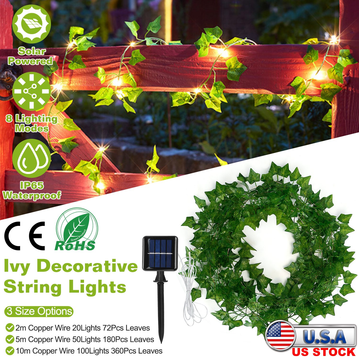 Artificial Ivy Solar Powered String Lights 360Pcs Leaves 100Pcs LED Beads Fake Leaf Fairy Lamps IP65 Waterproof DIY Decorative Night Light For Wedding