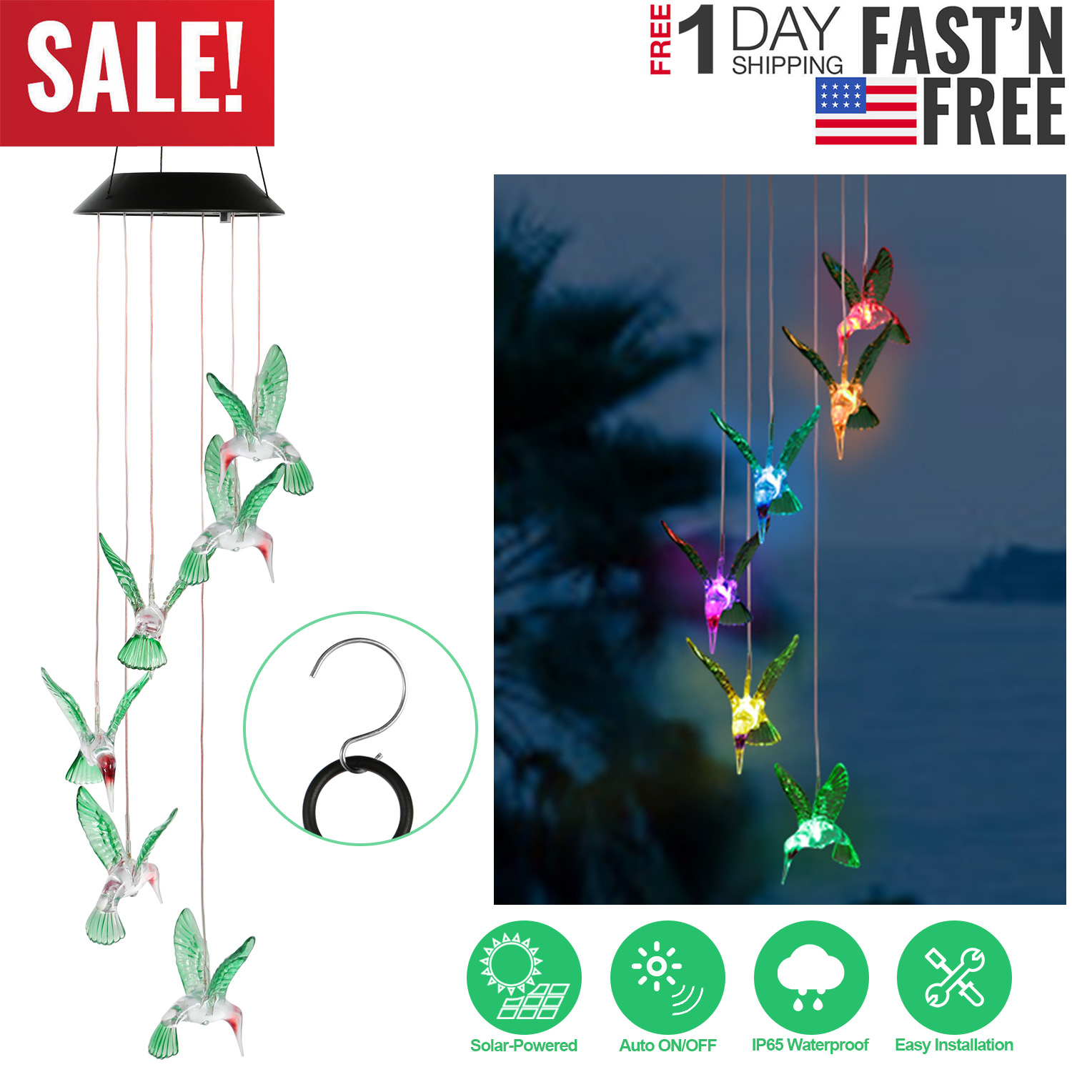 Home > LED Solar Hummingbird Wind Chime Solar String Lights 6 LEDs Color-Changing IP65 Waterproof Decorative Lamp Lighting for Home Garden Fence Party