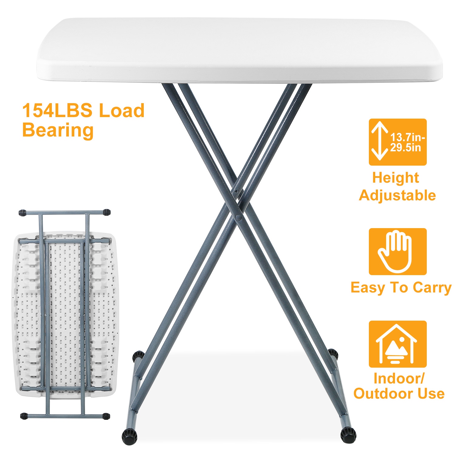 This quick-folding table is the perfect accessory for your campsite, patio, pool or home. Take it with you while camping, tailgating, out on picnics and other activities to create a convenient indoor outdoor table. The tabletop measures 30x19.3in .Able to hold up to 154lbs. it is ideal for holding food, drinks, snacks, keys and more. The classic style looks great to match with different home style, and the folding design makes it easy to store.