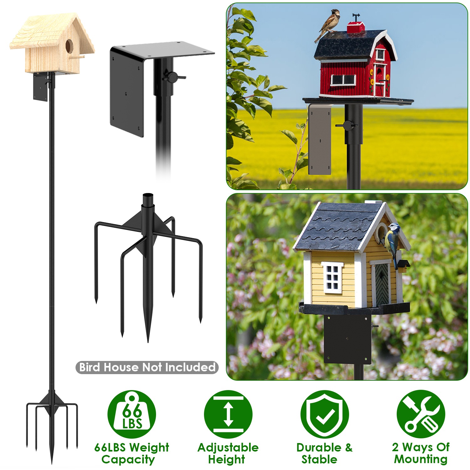 Home > 79.92in Bird House Pole Kit Height Adjustable Bird Feeder Pole Mount Kit Heavy Duty Bird House Pole Set with 5 Prongs Base for Bird House Bird Feeder