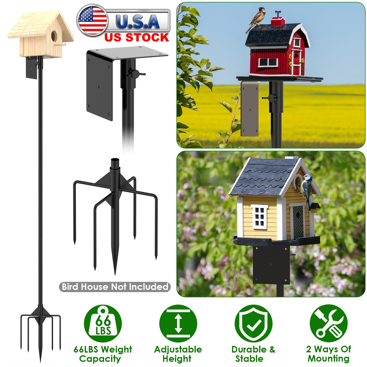 Do you want to invite birds to have fun or for a feast in your backyard and listen to the bird singing happily in your lawn or patio? Then create a house for them! Using this bird house pole kit, you can assemble it fast and easily and adjust its height freely. Advanced iron pole with black coating is heavy duty and durable enough to hold up to 66lbs, which is not easy to break. Great to use in the backyard, garden, patio, lawn and any other outdoor areas. It's also an ideal gift for your friends who love watching bird.